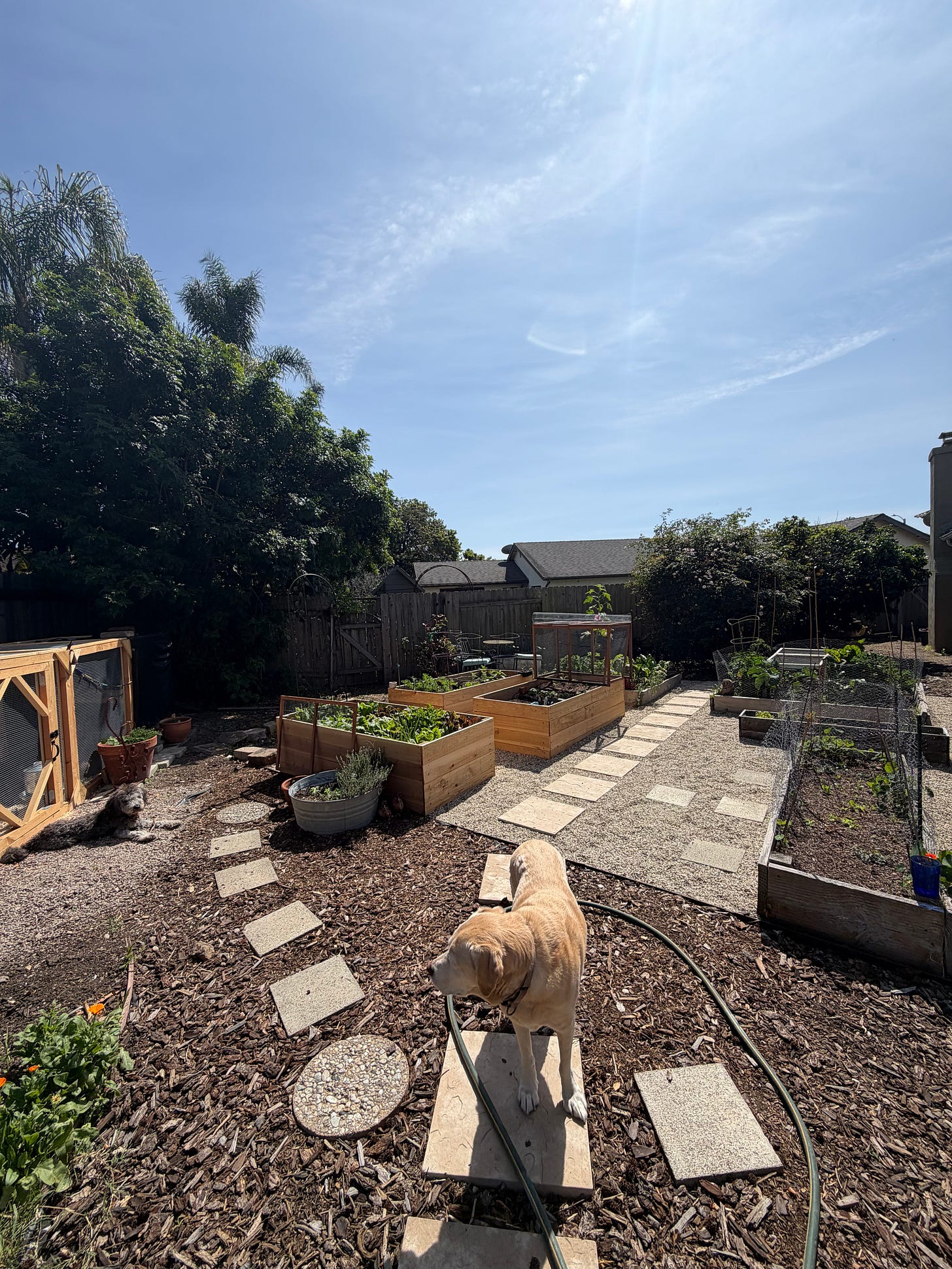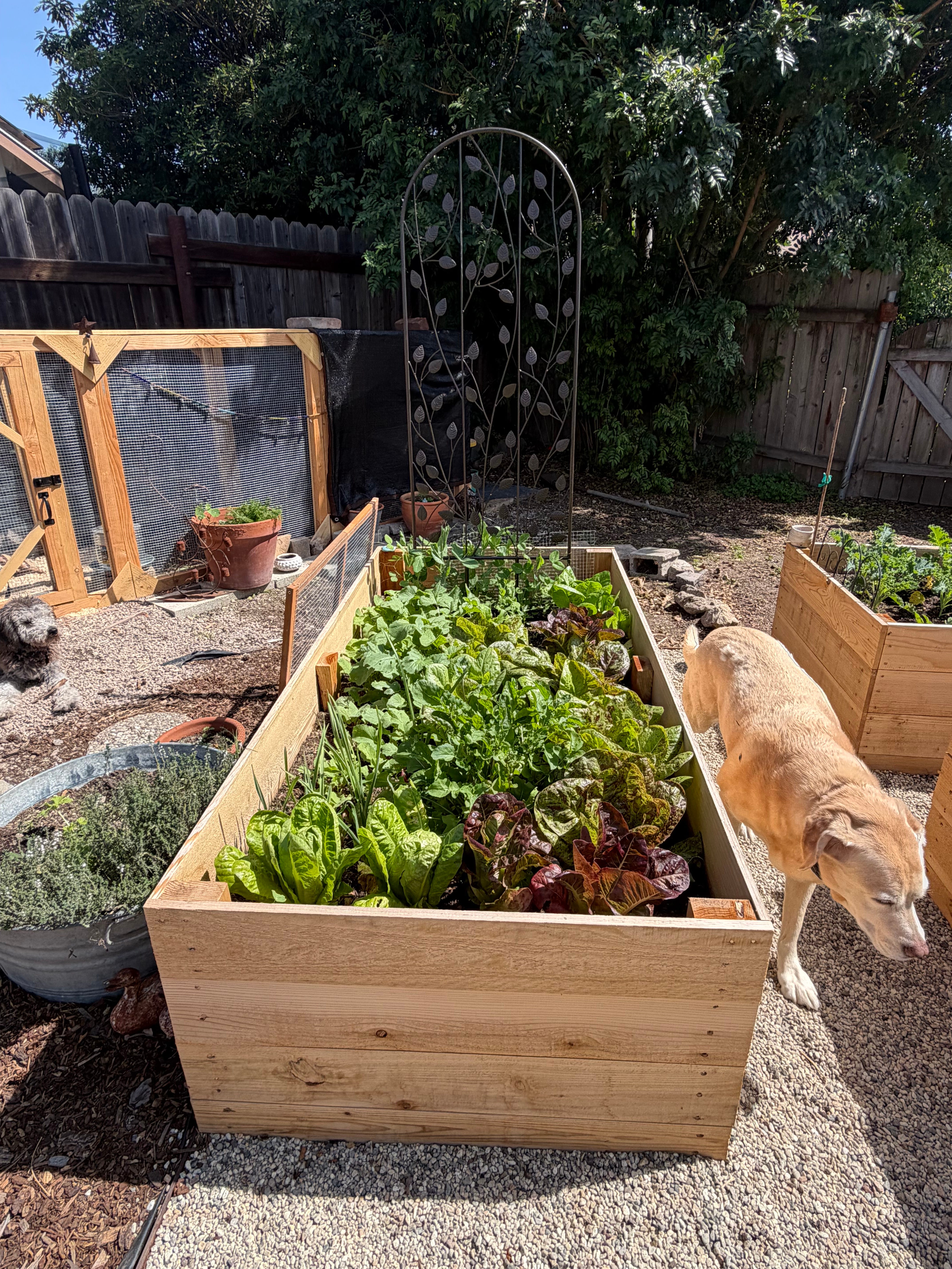 So that’s where I’ve been. Hellbent on the garden. A tiny farm. Seeds and water. Dirt and compost. Sun. Just me, the dogs and my three teenage chickens (just what I need, more teens.)